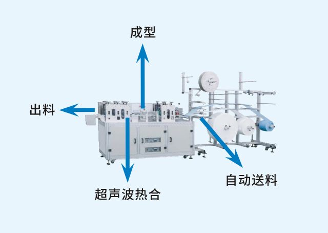 口罩自動生產(chǎn)線用成卷的無紡布,自動切割成口罩的外形,自動疊壓后自動焊接耳帶,經(jīng)過消毒等程序包裝成品,利用PLC、伺服電機(jī)等程序控制實現(xiàn)自動化生產(chǎn)。