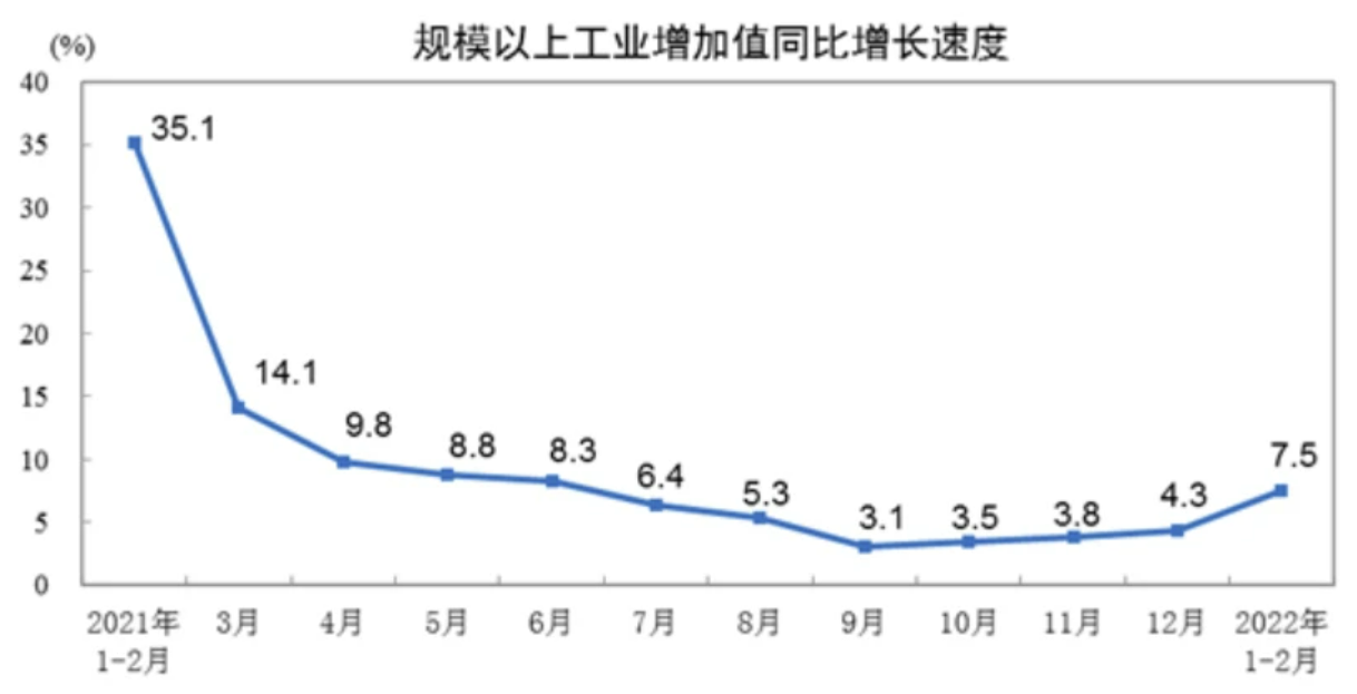 從制造業(yè)的宏觀大環(huán)境看,2022年1—2月份,全國(guó)規(guī)模以上工業(yè)增加值同比增長(zhǎng)7.5%(以下增加值增速均為扣除價(jià)格因素的實(shí)際增長(zhǎng)率)。從環(huán)比看,2月份,規(guī)模以上工業(yè)增加值比上月增長(zhǎng)0.34%。