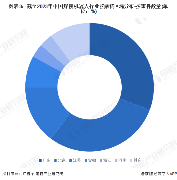 3、焊接機(jī)器人行業(yè)投融資區(qū)域較為集中